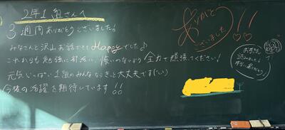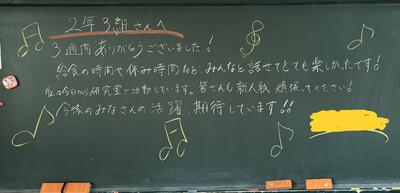 放課後には、担当クラスの教室にメッセージを書いてくれました。