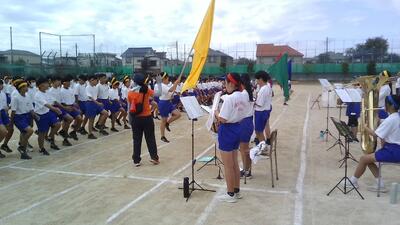 本日は過ごしやすい天気の中、体育祭の入場・退場および開会式・閉会式の練習を行いました。今年から吹奏楽部の生演奏に合わせて行進することになっています。練習を重ねるにつれて、手と足の動きがだんだんそろっていく様子を見ることができました。本番はより美しい行進を期待しています!
