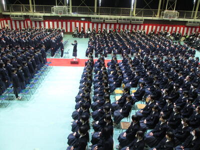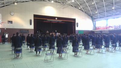 卒業生の合唱では体育館いっぱいに響いた歌声がとても力強く、「群青」の歌詞と三年間の生活が重なって聞こえて感動に包まれました。