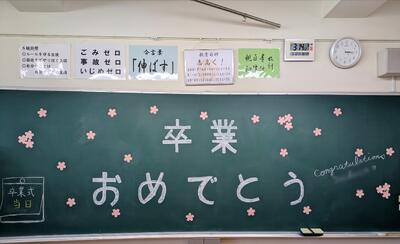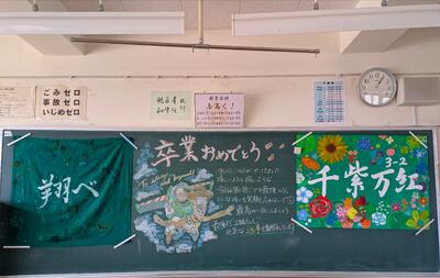 空っぽになった教室を訪れてみると、それぞれの担任の思いが詰まった黒板チョークアートだけが残されていました。