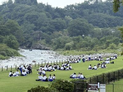 12:30 水紀行館近くで最後の集会を行い、これから帰路につきます。