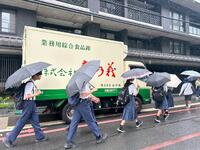 雨も止み、全ての班が旅館へ戻ってきました。シルバーボランティアさんとの別れを惜しむ姿も見られました。