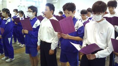 本日10/30(木)1,2校時は1年生、3,4校時は2年生と6組、5,6校時は3年生が体育館で合唱コンクールのリハーサルを行いました。どの学年も、他クラスの合唱を聴くのは初めて。このリハーサルをとおして、今後の練習は、より一層熱が入りますね。